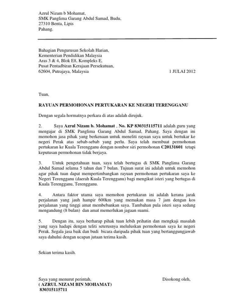 Contoh Surat Rayuan Pertukaran Guru Antara Daerah Spooky W Otosection